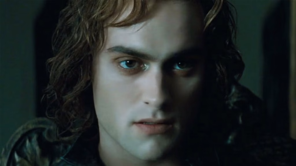 Stuart Townsend’s performance leans into that outward energy. His Lestat is driven by impulse and ego, always moving, always searching for the next reaction. Intimacy gives way to posture, but that choice aligns with the film’s obsession with visibility. Lestat is rarely alone in frame, even when the character feels isolated, swallowed by lights, crowds, and expectation.